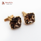 Retro Large Smoky Quartz Cufflinks 14K Gold