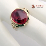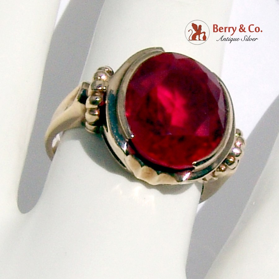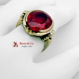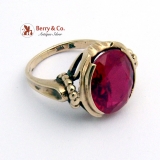 Vintage Retro Ring 18K Yellow Gold Synthetic Ruby 1940