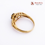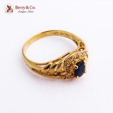 Natural Sapphire Ring 18K Yellow Gold White Gem Accents