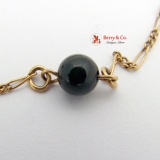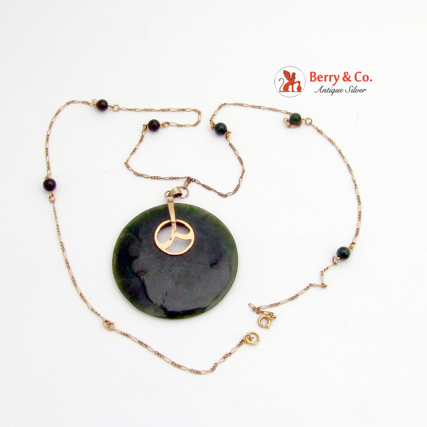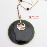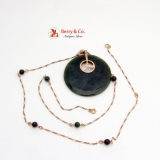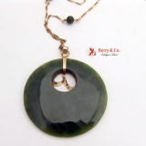 Vintage Large Spinach Nephrite Round Pendant and 18K Yellow Gold Chain with six round beads.