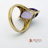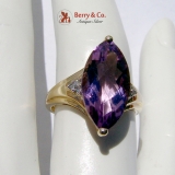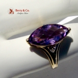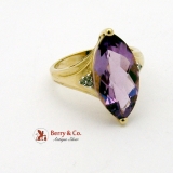 Dazzling Long Amethyst Checkerboard Cut Ring Diamond Accents 14 K Gold.