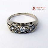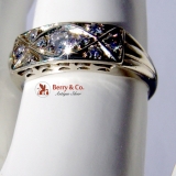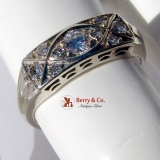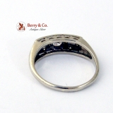 This handsome ring is size 7 1/2, the ring is 1/4" wide and weighs 3 grams. There are 9 small diamonds (aprox. .4 TCW)
