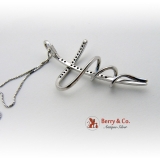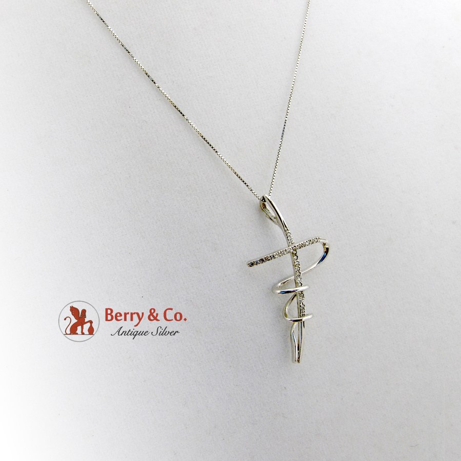 Amazing Italian 18K white gold pendant in the form of a spiraling cross with inset Diamonds. The pendant in on a lovely chain with a friction based adjustment mechanism. Makers mark 1022 V.