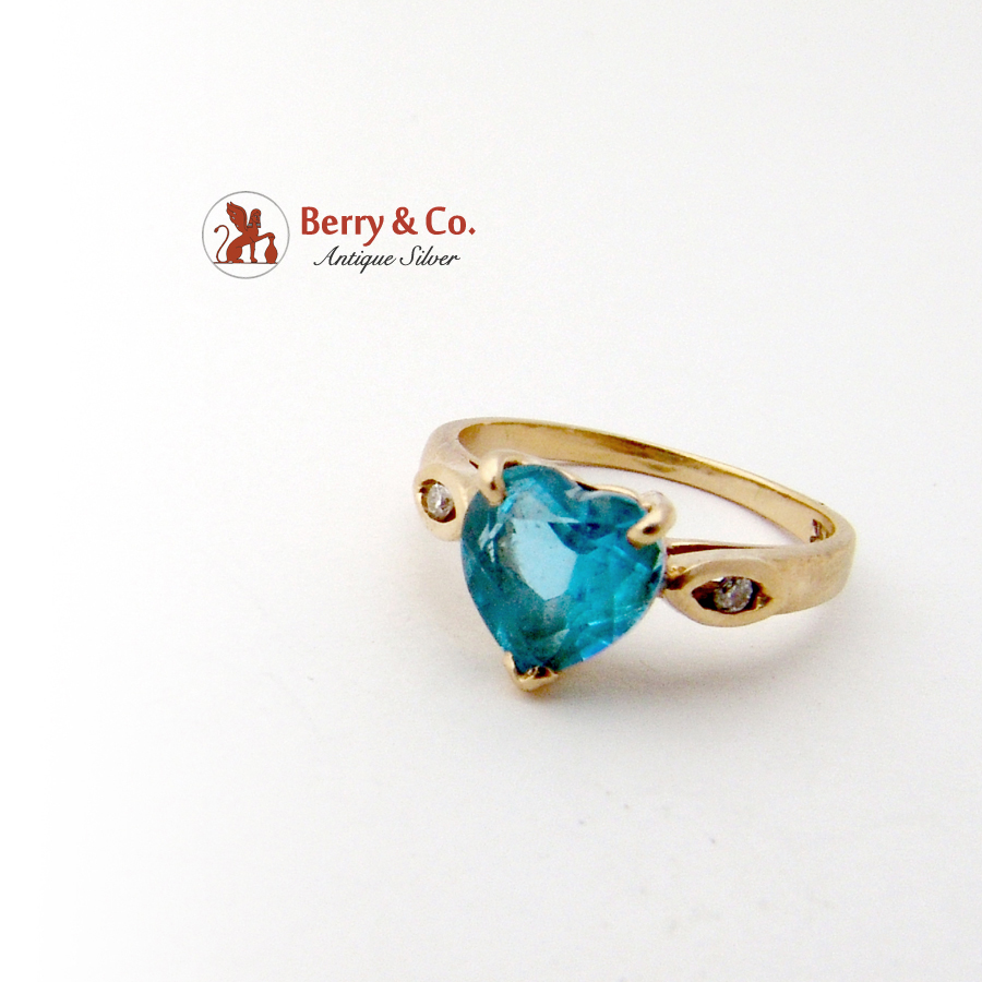 Brilliant Heart Cut Topaz Ring 14K Gold Diamonds