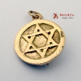 Judaica 14K gold round pendant, having figurine with The 10 Commandments on the one side and the Star of David on other.