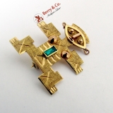 Pre-Colombian Style Female Figurine Brooch Pendant 14 K Gold Emerald