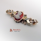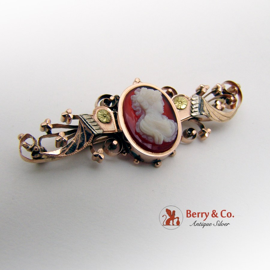 Antique Victorian Shell Cameo Brooch 14 K Rose White And Green Gold 1890