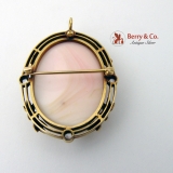 Large Cameo Brooch Pendant Shell 14K Yellow Gold White Sapphires 1890