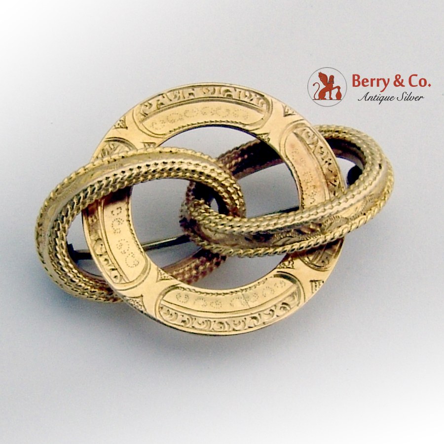 Antique Victorian Round and Oval Link Brooch 14 K Gold