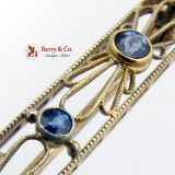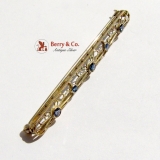 Vintage Ornate Open Work Bar Pin Brooch 14 K White Gold Sapphires.