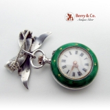 Ladies Watch Pendant Brooch Sterling Silver Guilloche Enamel Seed Pearls 1920
