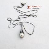 Estate Pearl  Drop Pendant Necklace 14 K White Gold Diamonds,