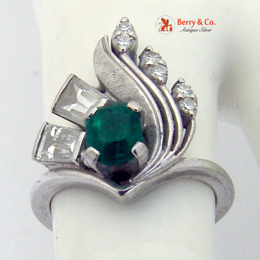 This marvelous ring is a size 4 1/8 and weighs 5g. The Emerald measures 6mm x 5mm.