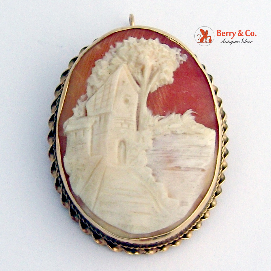 Architectural Shell Cameo Brooch Pendant 14 K Gold
