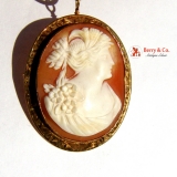 Vintage Shell Cameo Brooch Pendant 10 K Gold.
