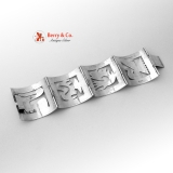 Large Peruvian Mid-century Hand Forged Sterling Silver Signed Openwork Panel Bracelet