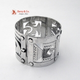 Large Peruvian Mid-century Hand Forged Sterling Silver Signed Openwork Panel Bracelet.