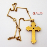 Victorian Cross Pendant Necklace 14 K Gold Garnet.