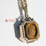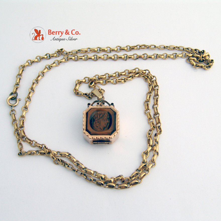 Intaglio Locket Pendant 14 K Gold Intaglio Tigers Eye Onyx