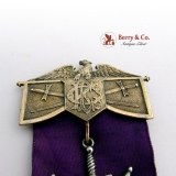 Antique Medal or Badge Knights of the Golden Eagle Gold Filled Coin Silver Purple Ribbon, 1886.