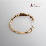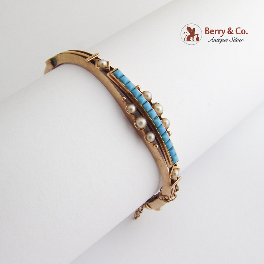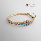 Vintage Victorian Bangle Bracelet Turquoise Seed Pearls 14 K Gold
