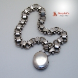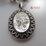 Antique English Victorian Silver Book Chain Necklace And Locket Pendant