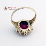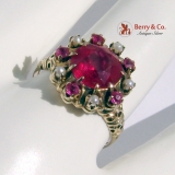 Vintage Retro Cocktail Ring 14K Rose Gold Synthetic Rubies Seed Pearls 1940
