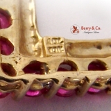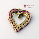 Open Heart Pendant Synthetic Rubies 10 K Yellow and White Gold