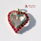 Open Heart Pendant Synthetic Rubies 10 K Yellow and White Gold.