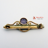 Antique Victorian 9K Gold Amethyst Seed Pearls Bar Brooch Pin