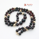 Amber Burgundy Dark Cherry Brown Round Beads 14 K Gold Women Necklace
