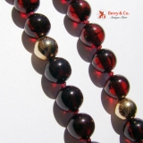 Gorgeous burgundy dark cherry brown round graduated heated Amber and 14 K yellow gold bead necklace.