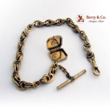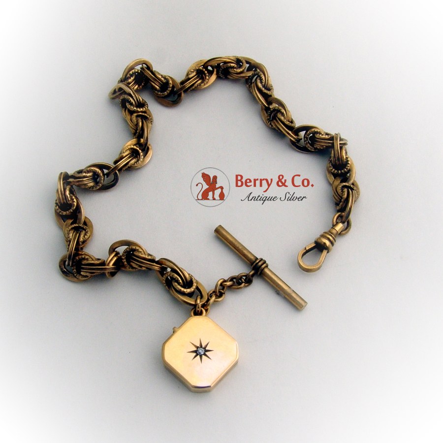 Antique Watch Chain and Locket Diamond Accent 14 K 10 K Gold.