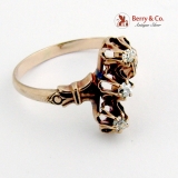 Antique Ornate Long Triple Diamond Ring Yellow Gold c. 1880.