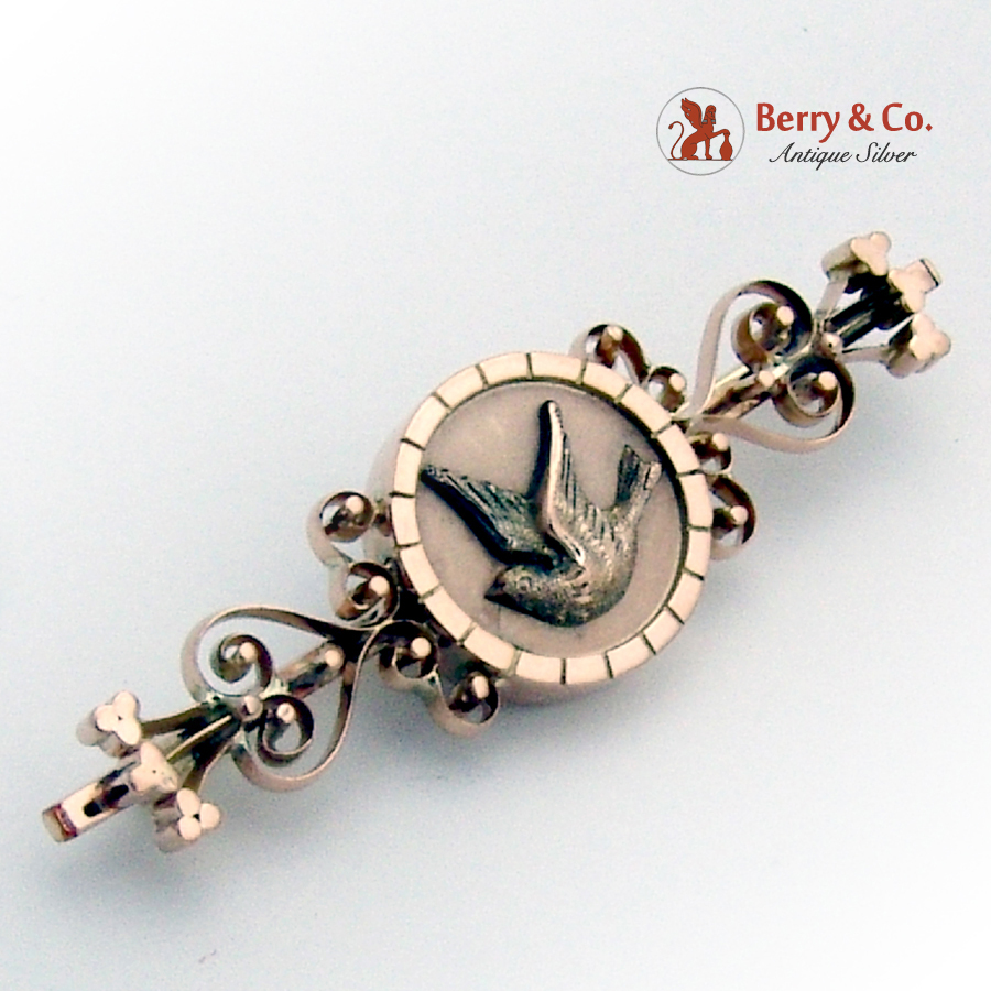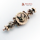 Antique Victorian 14K Gold Brooch Applied Bird Openwork Decorations 1880