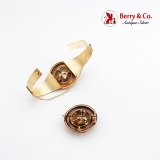 This majestic set measures: the brooch is 1 1/4" in diameter; the bracelet is 1 1/4" wide and 6 7/16" long (maximum length), the safety chain is 4" long. Total weight is 23.8 grams.