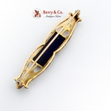 Victorian Long Openwork Brooch Agate Inset 14K Yellow Gold 1890