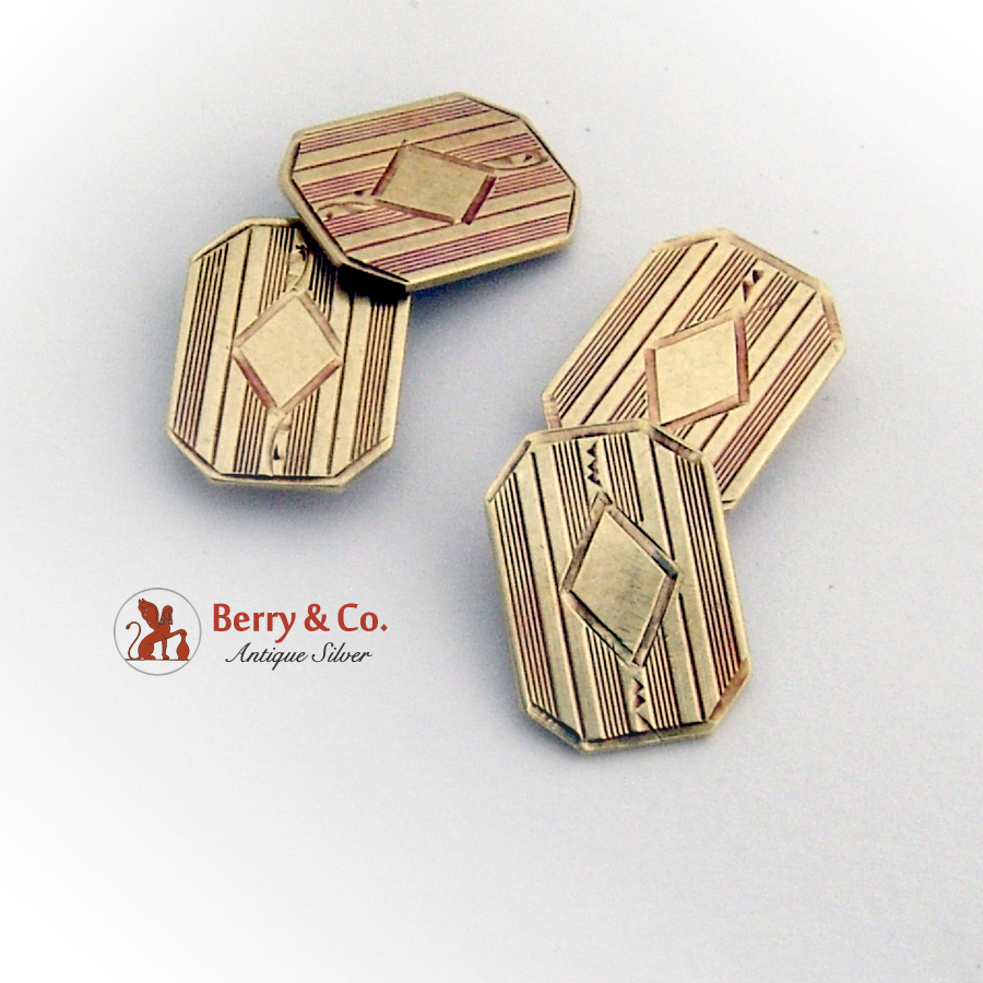 Vintage Engraved Pattern Octagonal Form Cufflinks 14K (.585) Gold.