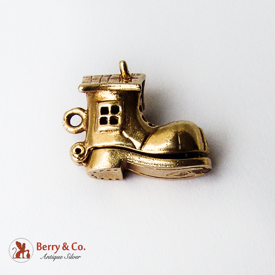 Movable Shoe House Charm Family Inside Yellow Gold Enamel