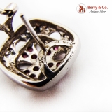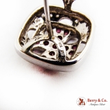 Openwork Design Rounded Square Form Ruby & Diamond Earrings 18K (.750) White Gold, French Clip Backs.