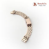 alternating rows of beveled rose gold and white gold measures a 8 inches long, 5/8" wide and weighs 56 grams.