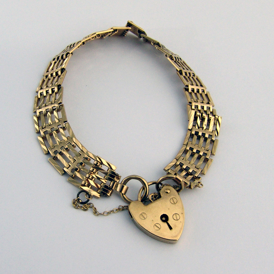 Vintage Chain Bracelet Heart Locket 9 Ct Gold
