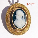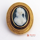 Antique Victorian Cameo Brooch Pendant 14 K Gold Sardonyx Hair Locket.