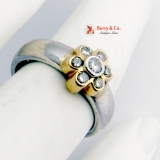 This simple yet elegant and sparkly ring is size 7, the band is 3/16" wide, 5/16" wide at the widest, the ring weighs 5.5 grams.