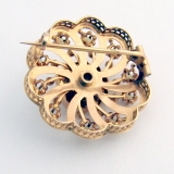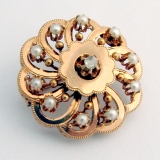 Vintage Round Brooch Pin 14 K Gold Seed Pearls Diamond