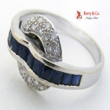 Art Deco 18K White Gold Diamond Sapphire Ring 1930