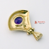 Wavy Rimmed Amethyst 14K Gold Pendant with chased accent. The Amethyst is oval cut.