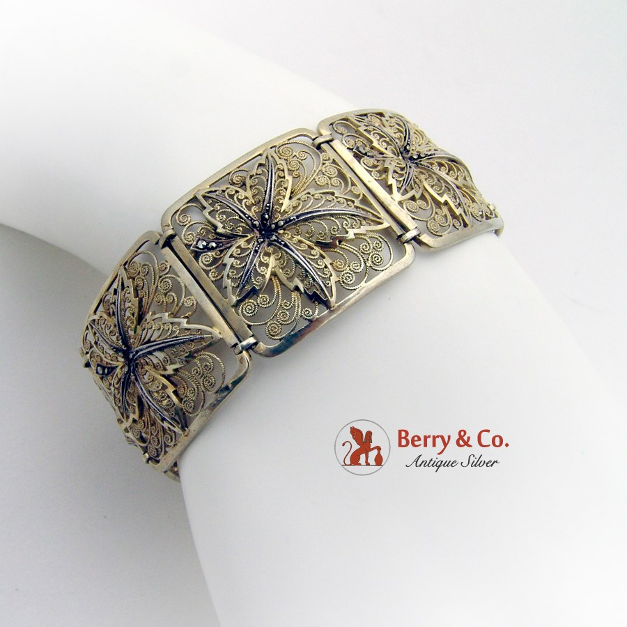 Great Ornate Filigree Bracelet 800 Silver Vermeil Marcasite Accents 1920