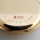 This stylish watch is 1 1/2" long, 1 1/8" wide. Hinged Cover, hinge ok, pin missing. The watch has a porcelain dial with dark red numerals and subsidiary seconds.
