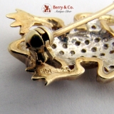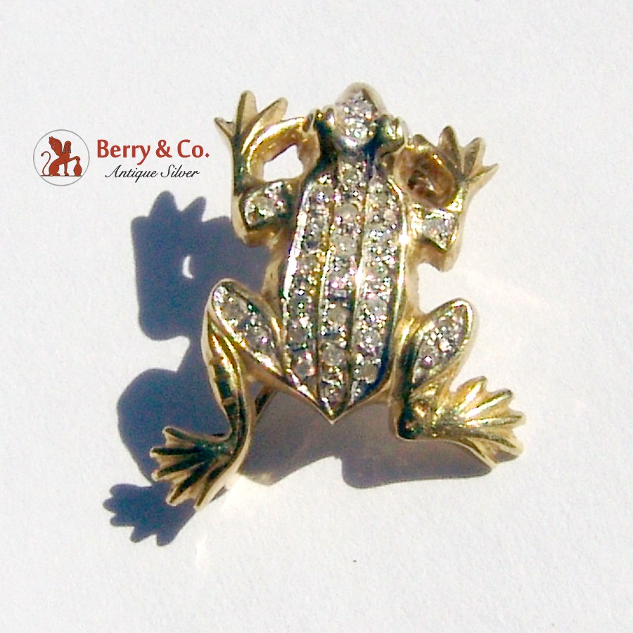 Vintage Frog Brooch 14 K Gold Diamonds.
